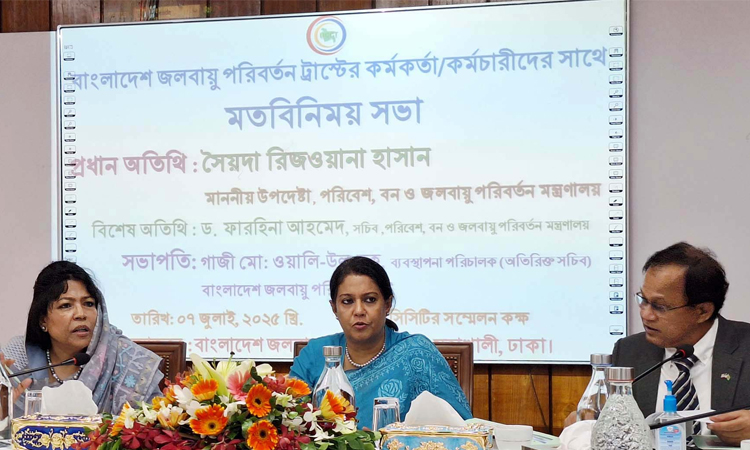 বাংলাদেশ সরকার জলবায়ু পরিবর্তনের প্রভাব মোকাবিলায় বাংলাদেশ ক্লাইমেট চেঞ্জ ট্রাস্ট (বিসিসিটি) প্রতিষ্ঠা করেছে। এই ট্রাস্টের মাধ্যমে জলবায়ু অভিযোজন ও প্রশমন প্রকল্প বাস্তবায়ন করা হচ্ছে। পরিবেশ উপদেষ্টা সৈয়দা রিজওয়ানা হাসান সম্প্রতি বিসিসিটির কার্যক্রম শক্তিশালী করার জন্য ১০ বছর মেয়াদি স্ট্র্যাটেজিক প্ল্যান প্রণয়নের ঘোষণা দিয়েছেন। BCTA
