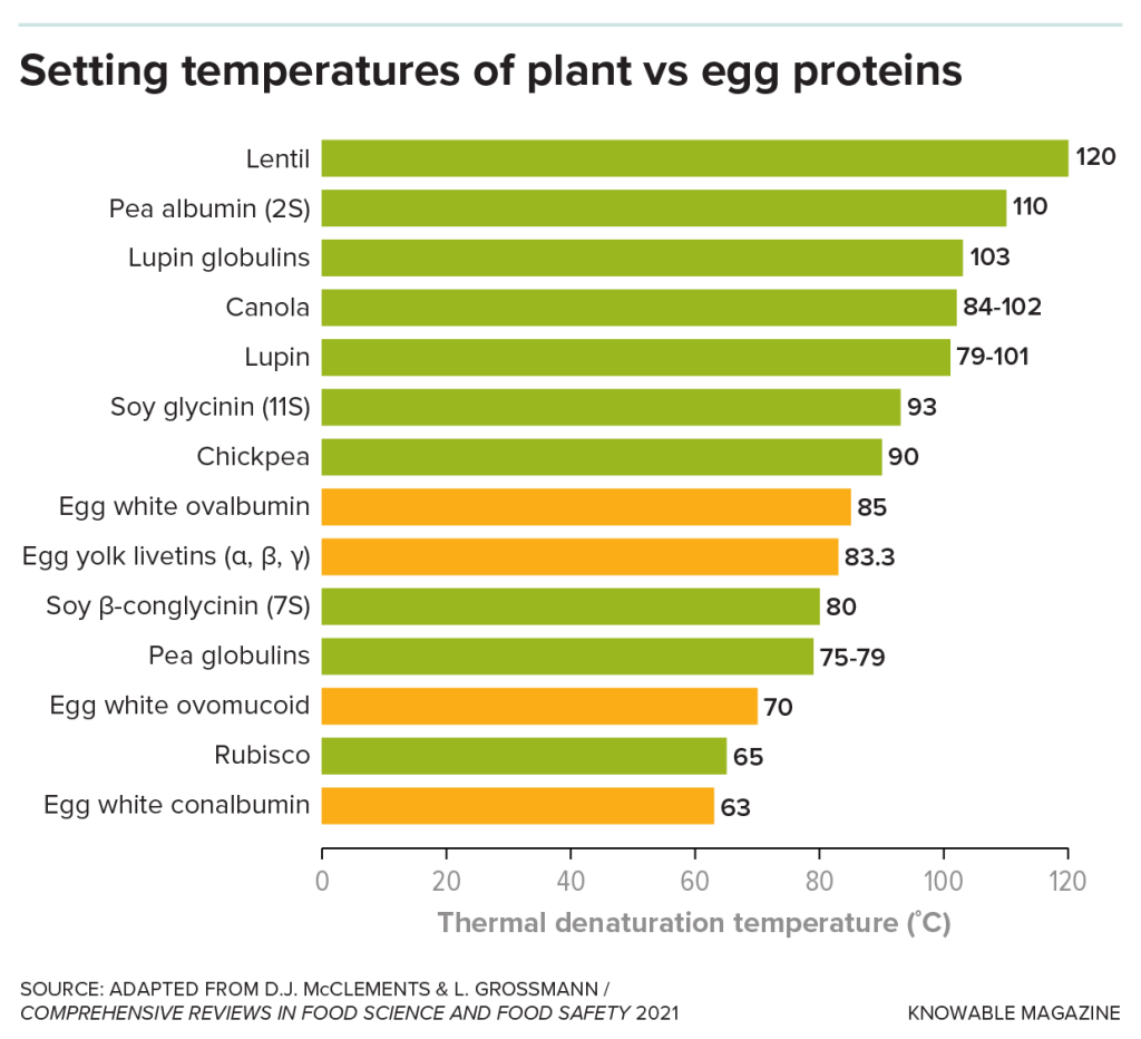 বাস্তবে, একটি ভালো উদ্ভিদভিত্তিক ডিম বানানো মানে আসল ডিমের প্রোটিন—বিশেষ করে ওভালবুমিন—রান্নার সময় যেভাবে আচরণ করে, সেটি অনুকরণ করা। ডিমের প্রোটিন গরম হলে একটি নির্দিষ্ট তাপমাত্রায় গিয়ে খুলে যায় এবং একে অপরের সঙ্গে যুক্ত হয়ে জেল তৈরি করে। এ কারণেই ডিমের সাদা ও কুসুম রান্নার সময় শক্ত হয়ে যায়।
